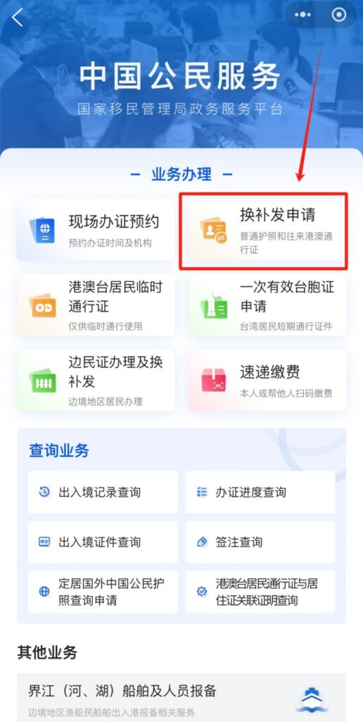 步骤 2:进入证件补换发入口