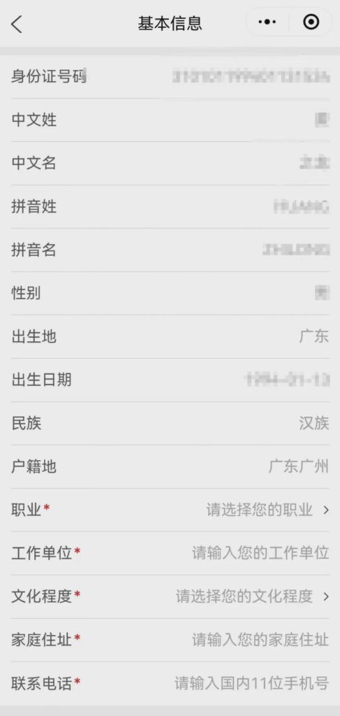 - 核对姓名、身份证号、户籍地址(与身份证一致)。