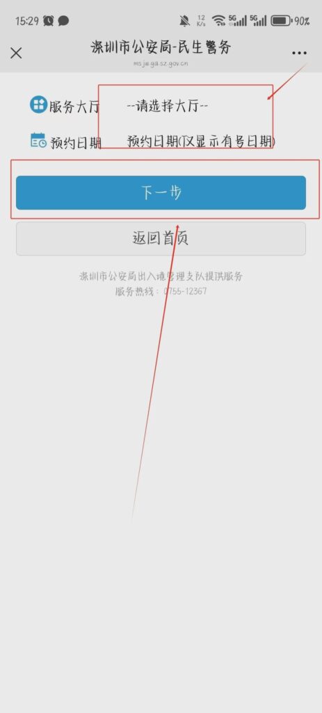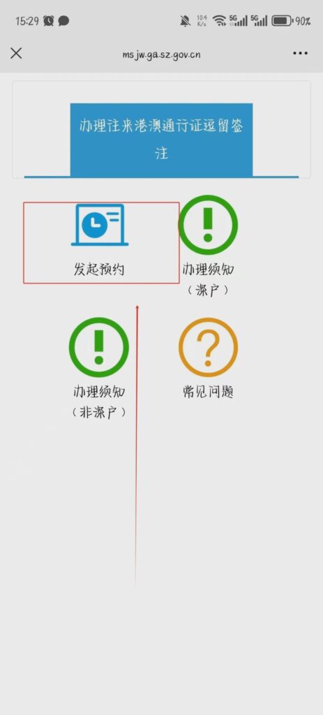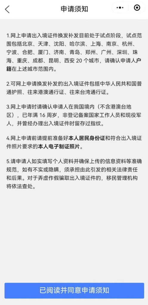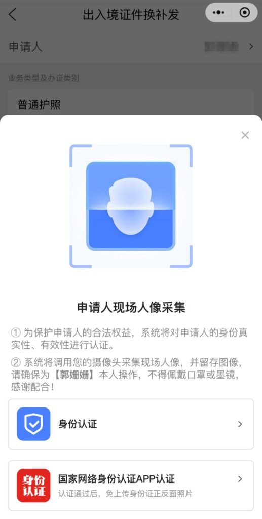 - 选择「往来港澳通行证」→选择换发原因(到期 / 损毁 / 遗失等)→下一步。