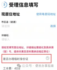 核对申报人信息,填写地址(如需临时身份证可以勾选);