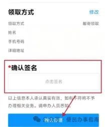 填写邮寄地址;最后签名,确认提交等待证件办理即可。