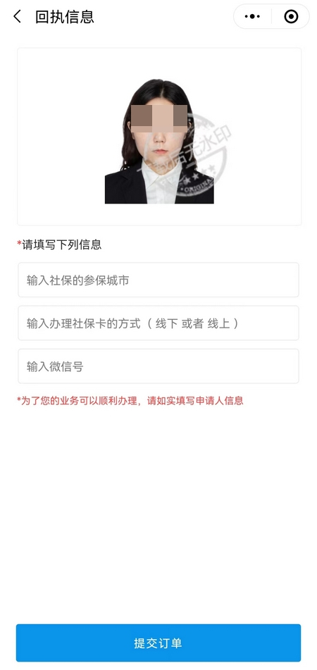小程序办理照片回执单详细步骤如下: