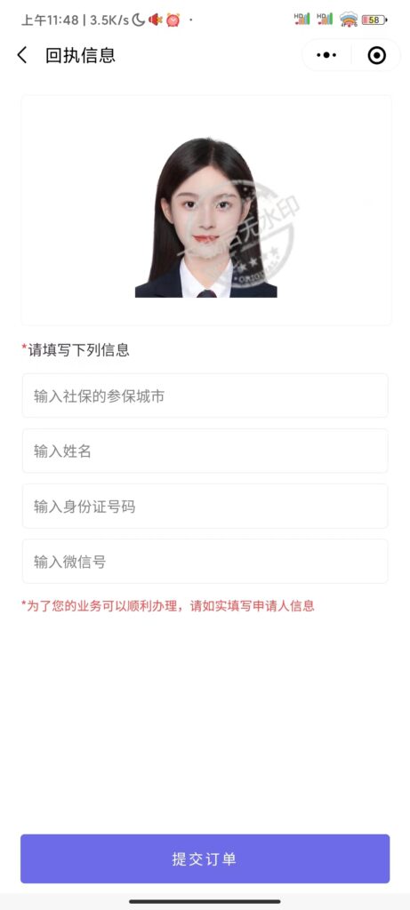 我们可以使用“数字相片回执"微信小程序/公众号线上办理身份证照片回执单,自己上传照片在微信就能办理回执单,支持多个城市多种证件,办理成功后会返给电子回执单+电子版照片,直接在订单页面下载,线下办理时去打印一份即可,线上办理只需要提取照片回执号。小程序办理回执单的详细步骤如下: