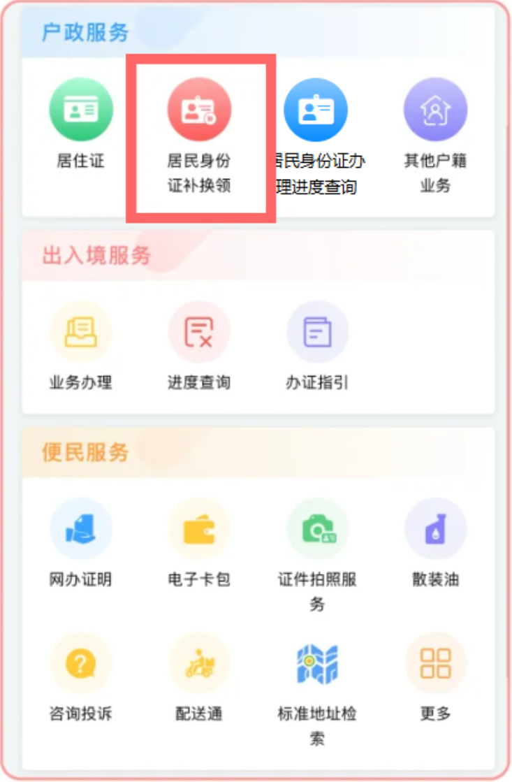 2、点击“居民身份证补换领”