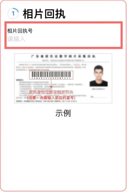 7、输入相片回执号