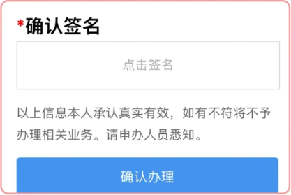 9、最后确认信息无误后确认签名并点击“确认办理”并缴纳工本费